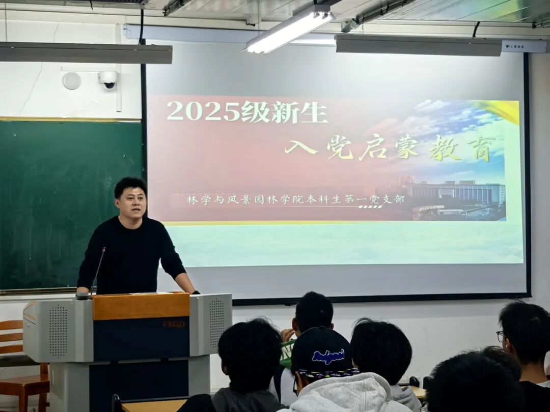 林学与风景园林学院本科生第一党支部书记吴智乐面向林学、智慧林业专业学生开展教育。他结合详实史料,系统阐述了中国共产党的性质宗旨、光辉历程和新时代大学生的使命担当,通过生动案例帮助同学们深刻理解树立正确入党动机的重要性,鼓励大家自觉用党的创新理论武装头脑,将个人理想融入国家发展大局。