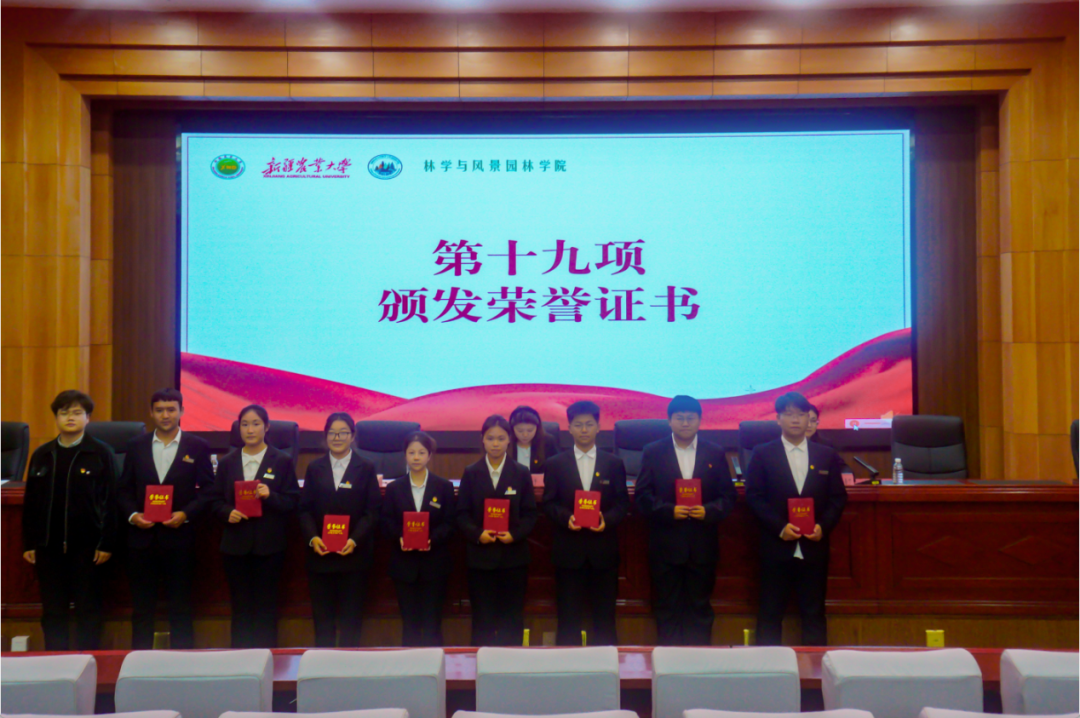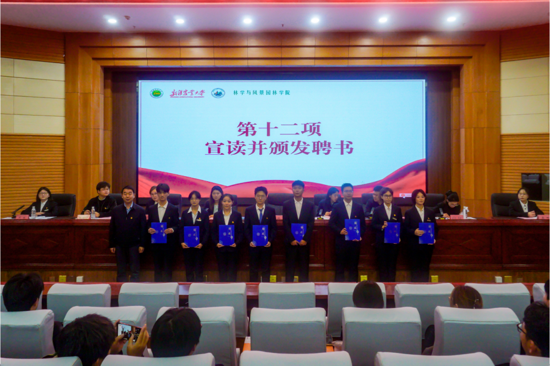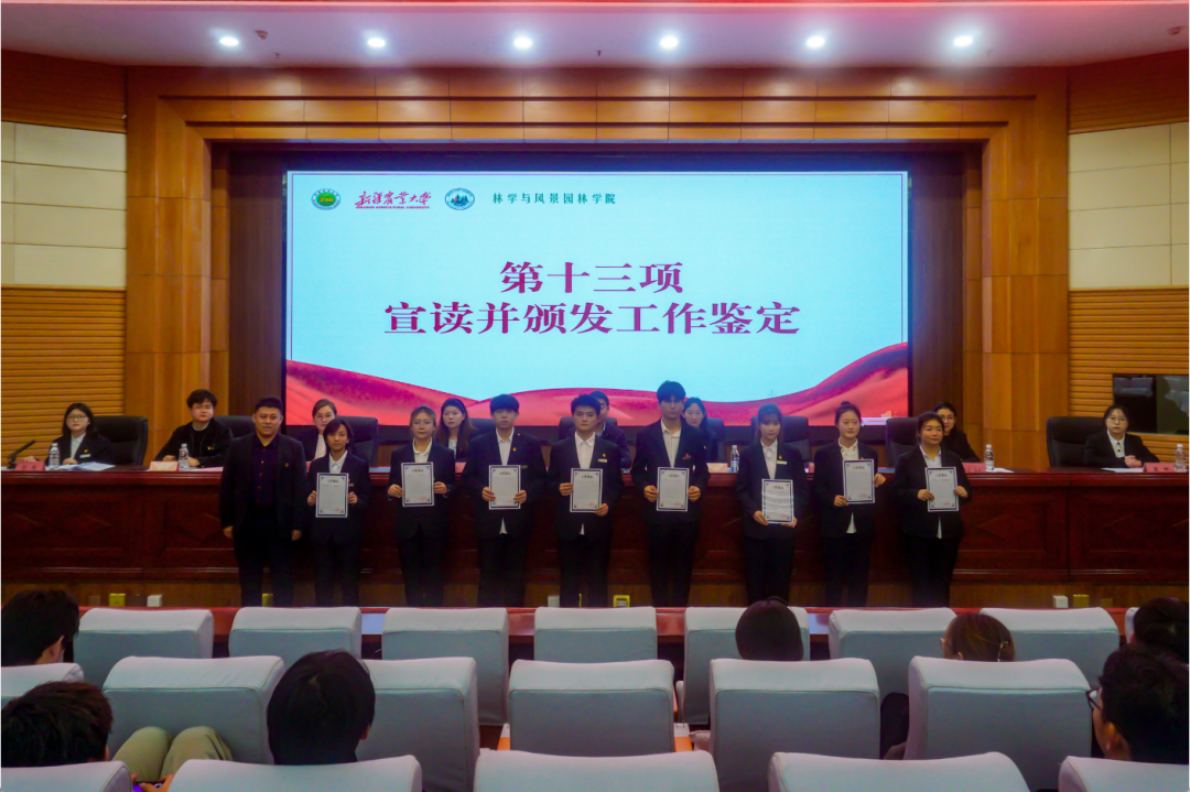 会上,宣读了《新疆农业大学林学与风景园林学院第四届团委、学生会主席团成员聘书颁发决定》、《新疆农业大学林学与风景园林学院第四届团委、学生会工作鉴定》、《新疆农业大学林学与风景园林学院第四届团委、学生会优秀部门表彰决定》、《新疆农业大学林学与风景园林学院第四届团委、学生会创新部门表彰决定》、《新疆农业大学林学与风景园林学院第四届团委、学生会优秀学生干部表彰决定》、《新疆农业大学林学与风景园林学院第四届团委、学生会优秀志愿者表彰决定》,并颁发聘书与荣誉证书。