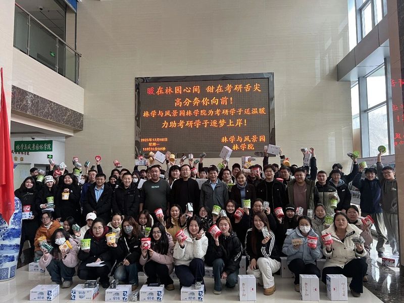 为缓解考研学子备考压力、凝聚奋斗力量,12月8日,林学与风景园林学院举办“‘暖在林园心间 甜在考研舌尖 高分奔你向前!’考研送温暖”主题活动。学院师生与近百名考研学子齐聚一堂,在温情关怀与榜样引领下,共同奔赴这场逐梦之约。