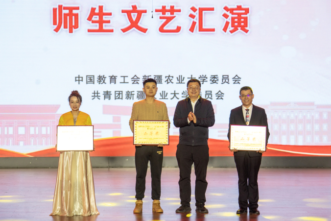 由林学与风景园林学院、草业学院联合创作并由100名师生共同演绎的朗诵节目《扎根边疆育栋梁·绿色丰碑映山河》在众多优秀节目中脱颖而出,荣获二等奖。节目以深沉的情感、磅礴的气势和鲜明的学科特色,深情讲述了农大师生扎根边疆、投身生态文明建设的动人故事,赢得了现场观众与评委的高度认可。